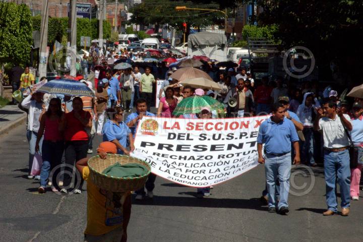 CHILPANCINGO, GUERRERO, 29OCTUBRE2008.- Aspecto general de la marcha que realizaron por las principales calles y avenidas de la capital del estado, maestros pertenecientes a la sección XXII del SUSPEG, contra la Alianza por la Calidad de la Educación y en apoyo a los maestros de la CETEG. FOTO: OSCAR ALVARADO/CUARTOSCURO.COM
