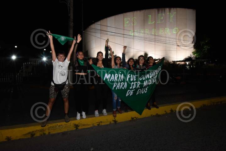 Mujeres de diversas colectivas se concentraron la noche de este martes para proyectar la leyenda de ‘En Guerrero es Ley’ en una de las paredes del recinto legislativo de esta entidad