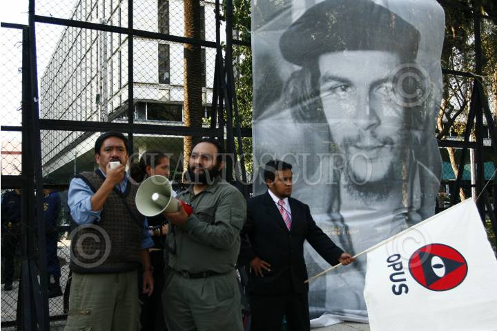 MÉXICO, D.F. 08OCTUBRE2007.- Un grupo de personas se reunieron frente a la embajada de Estados Unidos para conmemorar el aniversario luctuoso de el Ché Guevera. FOTO: PAOLA HIDALGO/CUARTOSCURO.COM