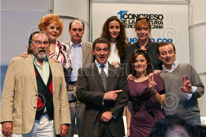 MÉXICO D.F., 01OCTUBRE2008.- Silvia Pinal, Héctor Guido, Cecilia Suarez, Mercedes Sampietro, Pedro Armendáriz, Antonio Banderas, Vanessa Bauche y Juan diego durante el Encuentro con Actores Destacados de la Cinematografía Iberoamericana que es parte de las actividades del Primer Congreso de la Cultura Iberoamericana que se realiza en el Centro Nacional de las Artes. FOTO: RODOLFO ANGULO/CUARTOSCURO.COM