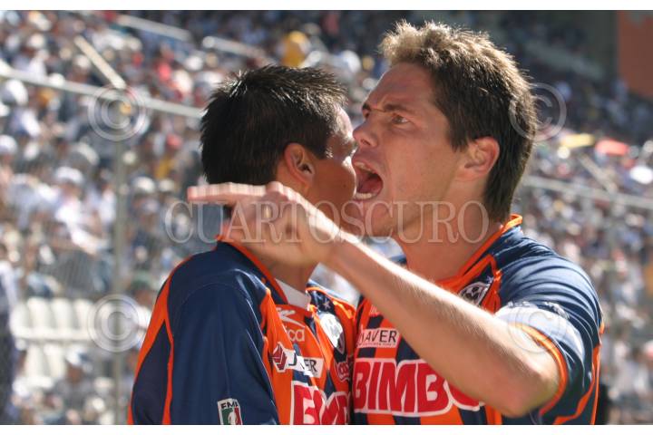 PACHUCA, HIDALGO, 28NOVIEMBRE2004.- Guille Franco de los Rayados del Monterrey, puso a su equipo adelante en el minuto 49' en un encuentro con el Pachuca, en el partido de vuelta de los cuartos de final. FOTO: Nelly Salas/CUARTOSCURO.COM