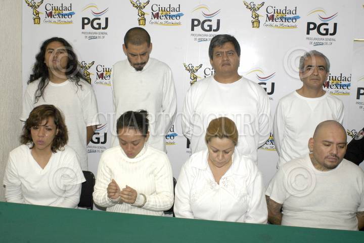 MÉXICO, D.F., 04ENERO2011.- El Procurador General del Distrito Federal Miguel Ángel Mancera, ofreció una conferencia por la detención que realizaron elementos de esta dependencia; en contra de de una banda de secuestradores "Los Aztlanes" en la que participaba David Romo Guillen, Pastor que dirigía la secta de "La Santa Muerte" en el Distrito Federal. Junto con este fueron presentados 3 mujeres y cinco Hombres acusados por el delito de secuestro, extorsión en contra de un diputado federal. Cabe mencionar que dicha banda se hacia pasar como integrantes de la banda de los "Z". FOTO: LUIS CARBAYO/CUARTOSCURO.COM