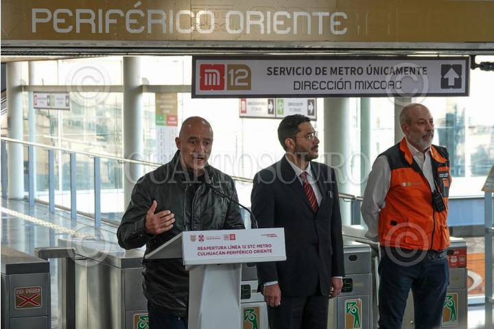 Guillermo Calderón, director del Sistema de Transporte Colectivo Metro, durante su participación en la reapertura del tramo de las estaciones del metro Atlalilco a Periférico Oriente y viceversa de la Línea 12