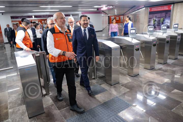 CIUDAD DE MÉXICO, 28MARZO2025.- Guillermo Calderón, director general del Sistema de Transporte Colectivo (STC) Metro, la jefa de gobierno Clara Brugada, y Juan Pablo de Botton Falcón, secretario Secretario de Administración y Finanzas, realizaron un recorrido por las estaciones Cuauhtémoc, Insurgentes, Sevilla y Chapultepec para observar el fin de los trabajos de remodelación de la segunda etapa de la Línea 1. FOTO: GALO CAÑAS/CUARTOSCURO.COM