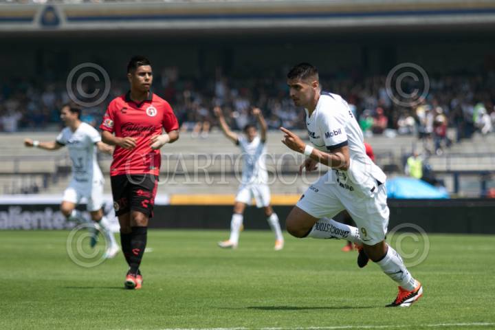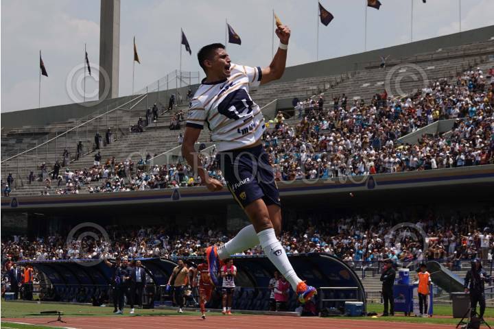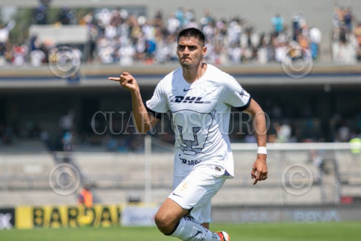 CIUDAD DE MÉXICO, 10MARZO024.- Guillermo Martínez de Pumas festeja su anotación ante el Tijuana, partido disputado en el Estadio Olímpico Universitario. FOTO: MOISÉS PABLO/CUARTOSCURO.COM