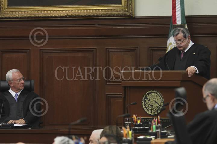 MÉXICO D.F., 28MARZO2011.- Guillermo Ortiz Mayagoitia, Ministro de la Suprema Corte de Justicia de la Nación, durante la sesión, donde se desecho el amparo que promovieron 15 intelectuales, para impugnar la reforma constitucional del 2007, que prohibió a los particulares contratar propaganda electoral en radio y televisión. FOTO: GUILLERMO PEREA/CUARTOSCURO.COM