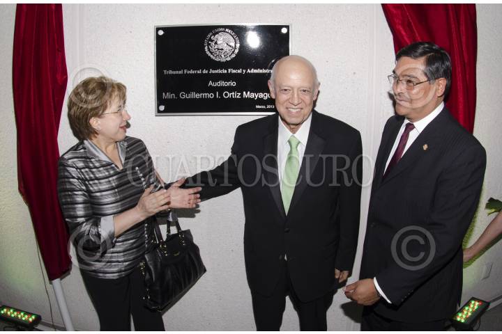 MÉXICO, D.F., 23MARZO2013.- Guillermo Ortíz Mayagoitia, ex ministro de la Suprema Corte de Justicia de la Nación (SCJN), acompañado de su esposa y el magistrado Juan Manuel Jiménez, presidente del Tribunal Federal de Justicia Fiscal y Administrativa (TFJFA), inauguraron las nuevas instalaciones del Tribunal Federal de Justicia Fiscal y Administrativa (TFJFA). FOTO: MISAEL VALTIERRA / CUARTOSCURO.COM