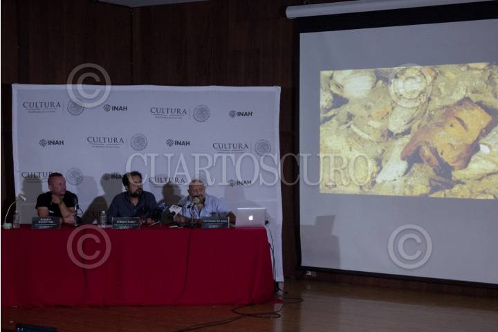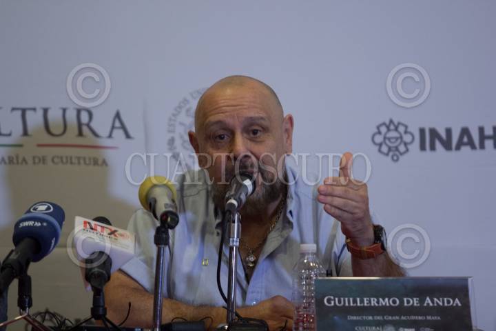 CIUDAD DE MÉXICO, 04MARZO2019.- Guillermo de Anda, arqueólogo del proyecto Gran Acuífero Maya INAH, ofreció una conferencia de prensa para hablar del descubrimiento de la cueva denominada Balamkú, en cuyo interior se han registrado cientos de artefactos arqueológicos, en su gran mayoría incensarios "tipo Tláloc", indicativa de su uso ritual en tiempos prehispánicos. Ubicada al este de la Pirámide de El Castillo e Templi de Kukulcán, la cueva fue descubierta fortuitamente hace más de 50 años por un grupo de ejidatarios y cerrada casi inmediatamente después de su hallazgo. El santuario subterráneo fue redescubierto en 2018 por especialistas del proyecto GAM del INAH. FOTO: MOISÉS PABLO /CUARTOSCURO.COM