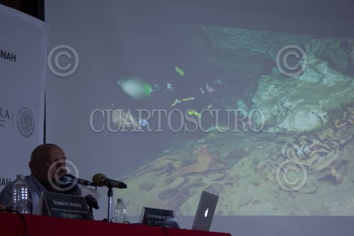 CIUDAD DE MÉXICO, 19FEBRERO2018.- Aspectos de la conferencia de prensa para dar detalles de los descubrimientos en Sac Actún, la cueva inundada más grande del mundo. Gracias a esto será posibles encontrar restos de la fauna extinta, así como más datos de la cultura maya en la zona. FOTO: GALO CAÑAS /CUARTOSCURO.COM