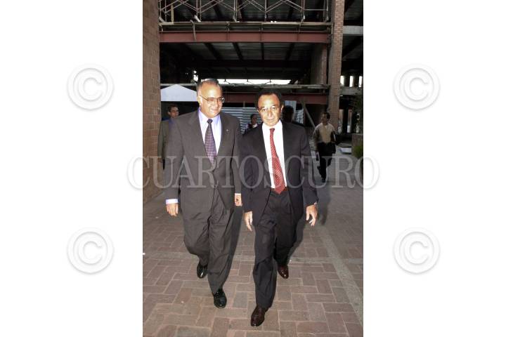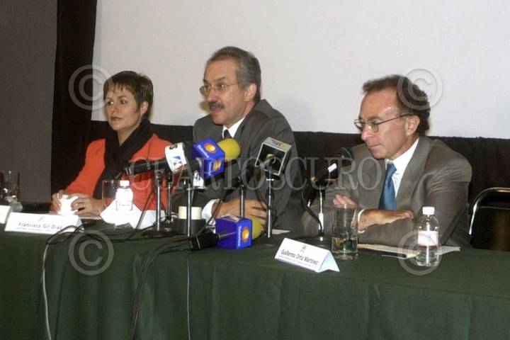 El Secretario de Hacienda y Crédito Público Francisco Gil Díaz y el Gobernador del Banco de México Guillermo Ortíz Martínez, esta noche en conferencia de prensa anunciaron que la Bolsa Méxicana de Valores se mantendra cerrada el día de mañana; así mismo condenarón los hechos ocurridos en E.E.U.U. FOTO: David Bolaños/CUARTOSCURO.COM