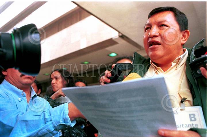 Guillermo May, integrante del consejo Indígena leyó un comunicado, en el que señala que el gobierno federal no ha cumplido los requisitos que solicitó el EZLN, para el diálogo de paz. FOTO: Victoria Valtierra/CUARTOSCURO.COM