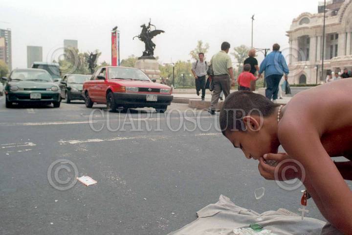De lunes a domingo Memo se gana la vida en el cruce de Av. Juárez y Eje central, en el centro de la ciudad. FOTO: Oswaldo Ramírez/CUARTOSCURO.COM