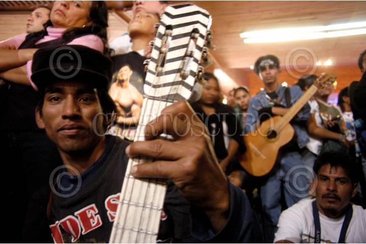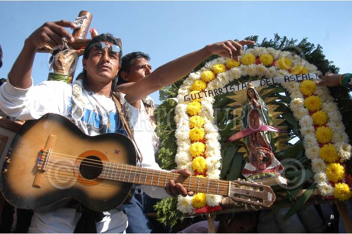 MÉXICO D.F. 14ENERO2007.- Guitarristas urbanos e integrantes de diversos grupos de rock mexicano, realizaron una peregrinación a la Basílica de Guadalupe. FOTO: GUILLERMO PEREA /CUARTOSCURO.COM