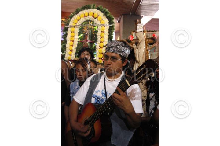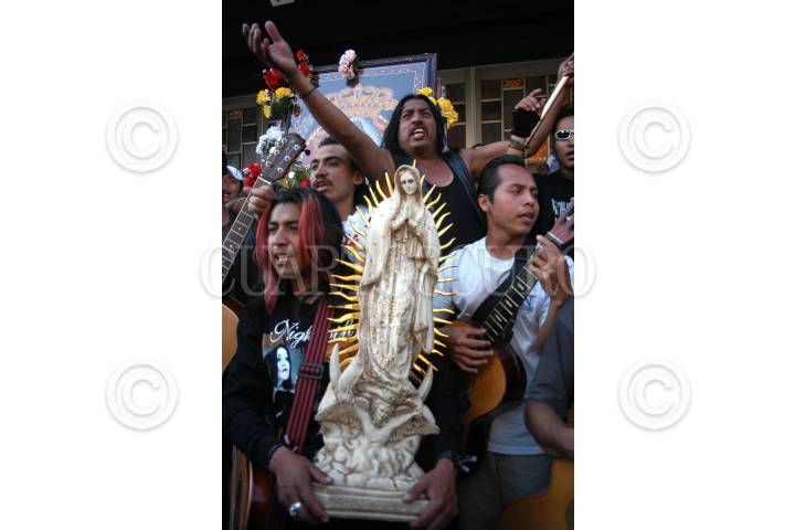 MÉXICO D.F. 14ENERO2007.- Guitarristas urbanos e integrantes de diversos grupos de rock mexicano, cantan y aplauden a la virgen a su salida de la Basílica de Guadalupe. FOTO: GUILLERMO PEREA /CUARTOSCURO.COM