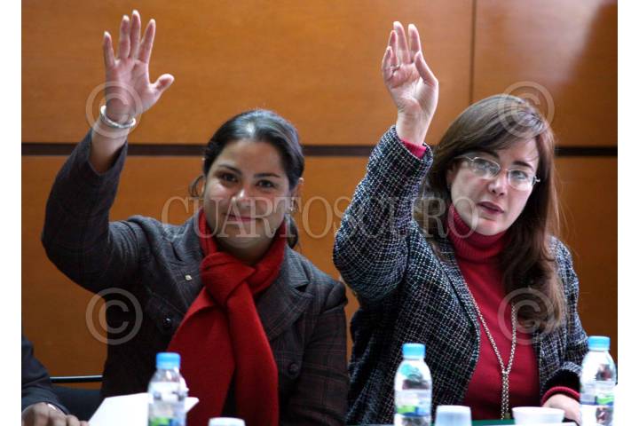 MÉXICO D.F., 03ENERO2008.- La senadora del PAN Adriana Gonzalez y la senadora del PRD Yeidckol Polevnsky Gurwitz, integrantes de la Segunda Comisión de Relaciones Exteriores, Defensa Nacional y Seguridad Pública, que se instaló hoy como parte de los trabajos de la Comisión Permanente. FOTO: ISRAEL VERA/CUARTOSCURO.COM