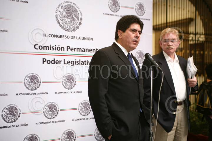 MÉXICO, D.F., 13MAYO2009.- Tomás Torres Mercado, senador del PRD y Javier González Garza, diputado del PRD exhortando al Congreso de la Unión un periodo extraordinario de sesiones para atender la emergencia económica. FOTO: CUARTOSCURO.COM
