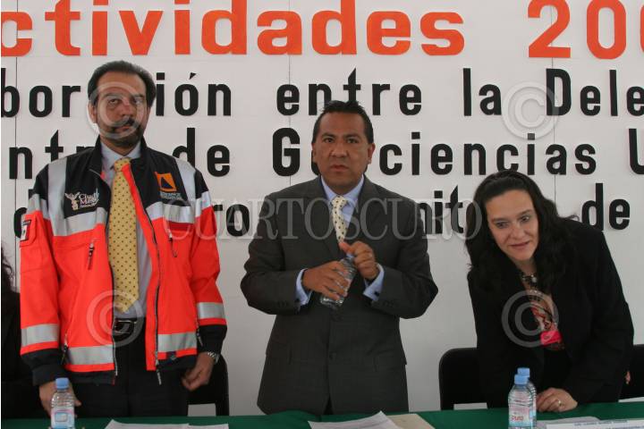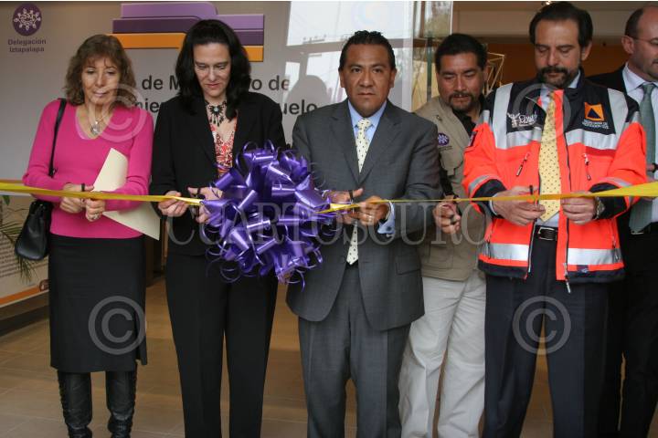 MÉXICO, D.F., 30ENERO2009.- Elias Miguel Moreno, secretario de protección civil del Distrito Federal, el delegado de Iztapalapa, Horacio Mesa Martínez y Laura Gurza Jaird, coordinadora de protección civil de la Secretaria de Gobierno, durante la inauguración del Centro de Monitoreo de Subsuelo el cual servirá para monitorear zonas peligrosas en Iztapalapa. FOTO: RICARDO CASTELAN/CUARTOSCURO.COM