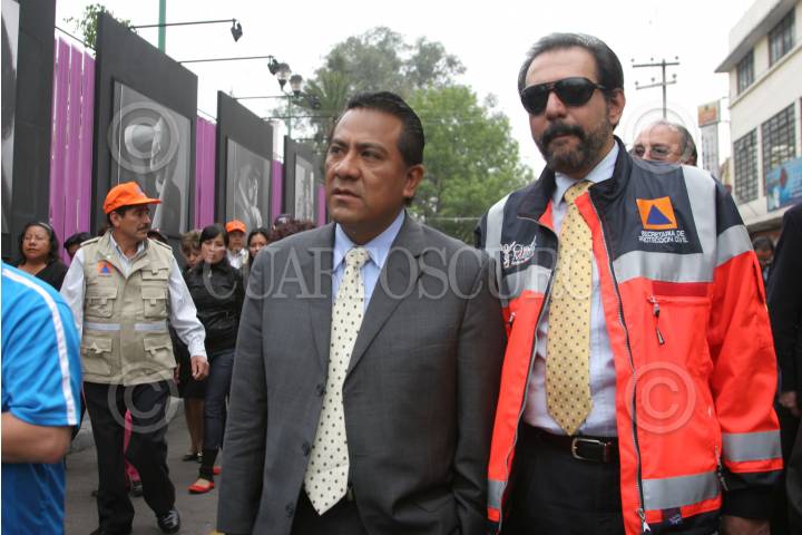 MÉXICO, D.F., 29ENERO2009.- Laura Gurza Jaird, coordinadora de protección civil del a Secretaria del Gobierno y el delegado de Iztapalapa, Horacio Mesa Martinez, durante la inauguración del Centro de Monitoreo de Subsuelo, el cual servirá para monitorear zonas peligrosas en Iztapalapa. FOTO: RICARDO CASTELAN/CUARTOSCURO.COM