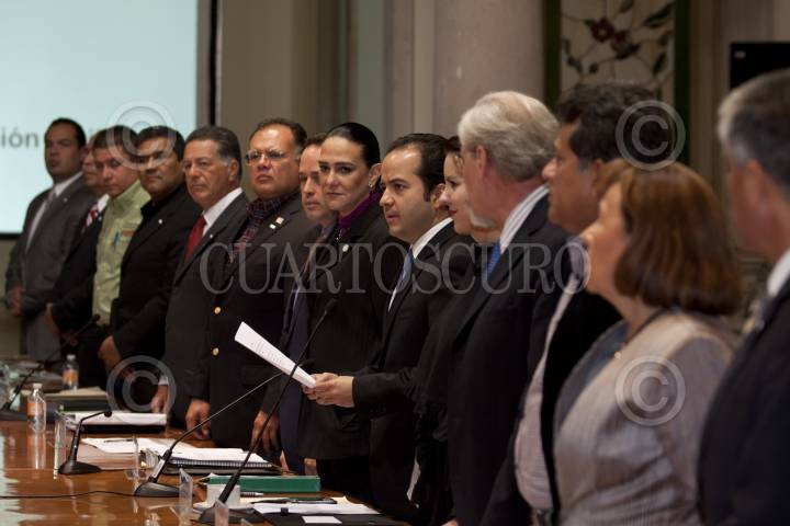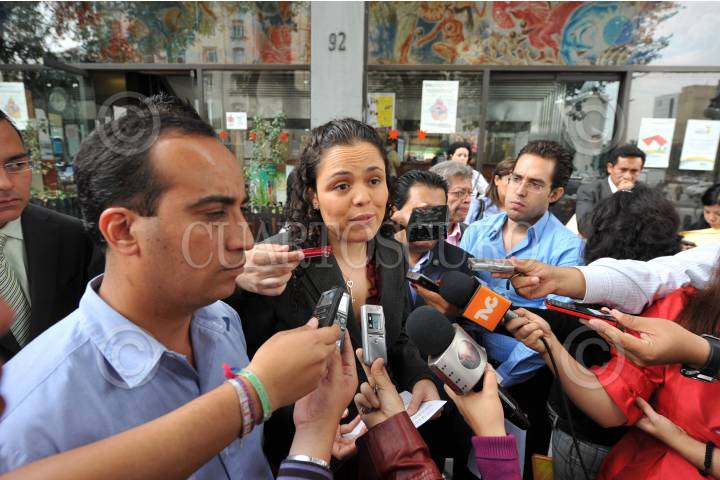 MÉXICO, D.F., 01SEPTIEMBRE2010.- Rafael Miguel Medina Pederzini, Mariana Gómez del Campo Gurza, coordinadora de los diputados panistas en la Asamblea Legislativa del Distrito Federal (ALDF) y Rafael Calderón Jiménez, presentaron una denuncia administrativa en contra del Jefe de Gobierno, Marcelo Luis Ebrard Casaubón, en oficinas de la Contraloría General del Distrito Federal. FOTO: IVÁN MENDEZ/CUARTOSCURO.COM