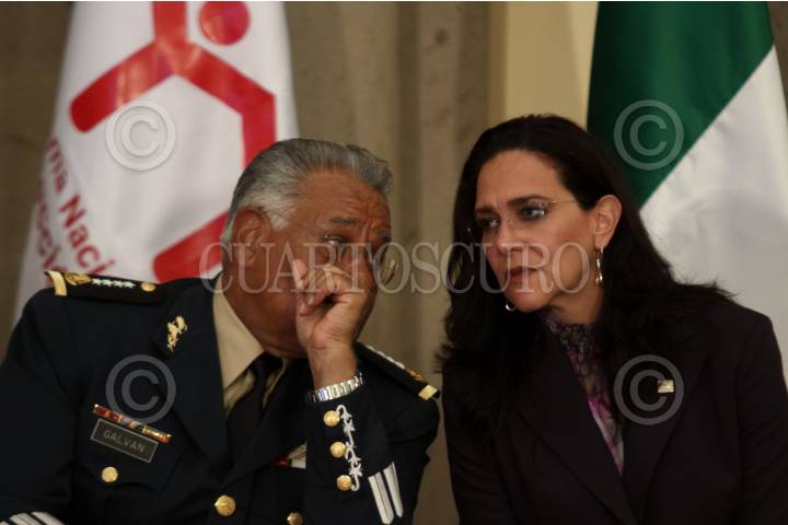 MÉXICO D.F., 19SEPTIEMBRE2010.- Guillermo Galvan, secretario de la Defensa Nacional conversa con Laura Gurza, coordinadora general de Protección Civil durante la ceremonia conmemorativa del Día Nacional de Protección Civil que se realizo en el Salón de la Tesorería en Palacio Nacional. FOTO: RODOLFO ANGULO/CUARTOSCURO.COM