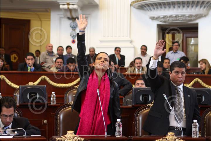 MÉXICO, D.F., 01DICIEMBRE2010.- Marina Gómez del Campo, coordinadora de los diputados locales del PAN y su compañero de bancada José Giovani Gutiérrez Gurza, durante una votación en la sesión en la que compareció el Secretario de Finanzas del DF en la Asamblea Legislativa. FOTO: MOISÉS PABLO/CUARTOSCURO.COM