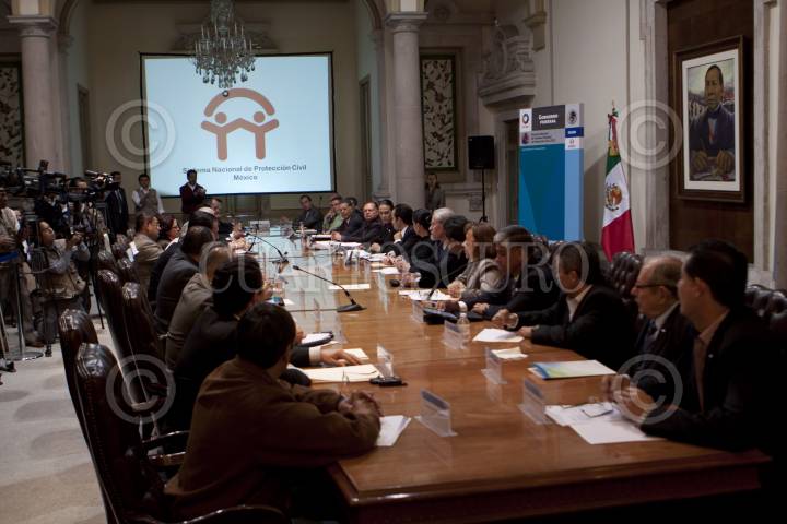 MÉXICO, D.F., 26ENERO2012.- Alejandro Poiré, secretario de Gobernación, acompañado de Laura Gurza, Coordinadora Genera de Protección Civil de la Secretaria de Gobernación durante la reunión nacional de titulares de Protección Civil de Entidades Federativas que se realizo en la sede de la secretaria. FOTO: RODOLFO ANGULO/CUARTOSCURO.COM