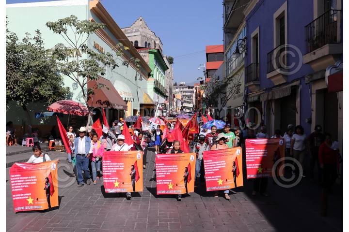 CUERNAVACA, MORELOS, 04FEBRERO2019.- Marcha de la Asociación Cívica Morelense “Gustavo Salgado” por las calles del centro de la ciudad. El 3 de febrero de 2015 se reportó la desaparición de Gustavo Salgado Delgado, militante del Frente Popular Revolucionario; un día después, su cuerpo fue localizado con evidentes huellas de tortura, decapitado y con las manos cercenadas en el paraje Las Huilotas, en el municipio de Ayala, en el oriente del estado. Cuatro hombres fueron detenidos por este homicidio. Hoy se cumplió el cuarto aniversario. FOTO: MARGARITO PÉREZ RETANA /CUARTOSCURO.COM