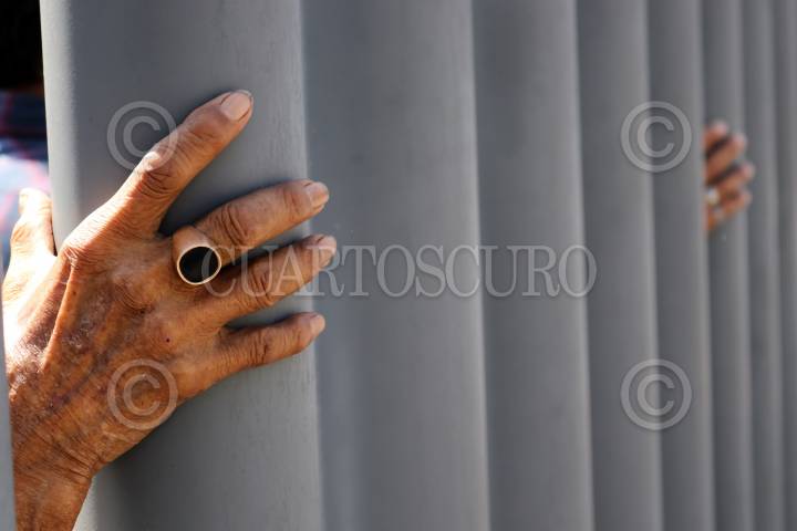 CUERNAVACA, MORELOS, 20MARZO2019.- La mano de un hombre de la tercera edad agarra uno de los tubos que sirven de protección del congreso local. La Asociación Cívica Gustavo Salgado, se manifestó cerrando los accesos del congreso local para respaldar a su líder, Gabriel Rivas, en su exigencia de que se le pague su seguro de vida, al cual los exdiputados tienen derecho al cumplir los 60 años. FOTO: MARGARITO PÉREZ RETANA /CUARTOSCURO.COM