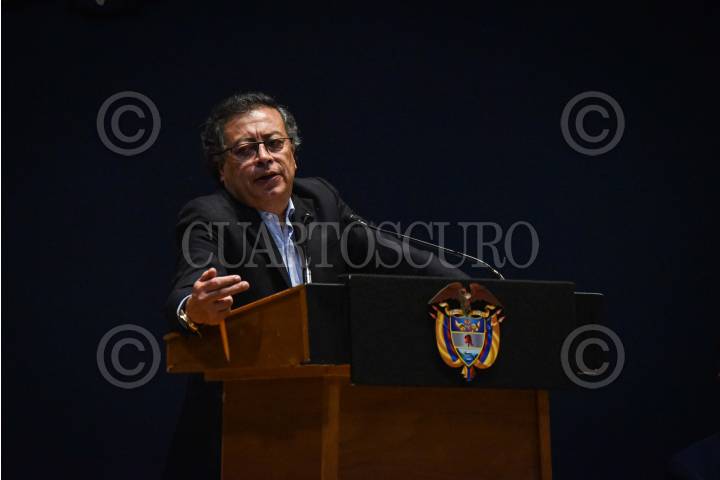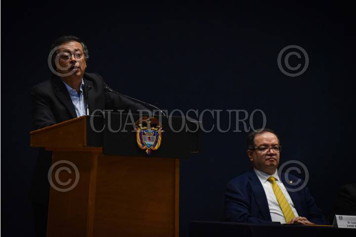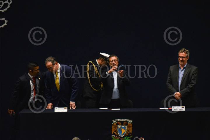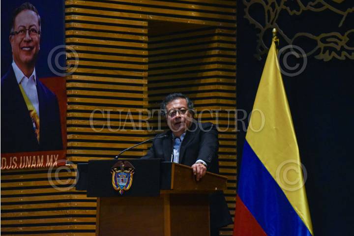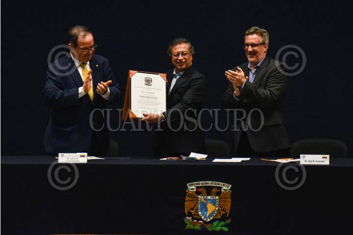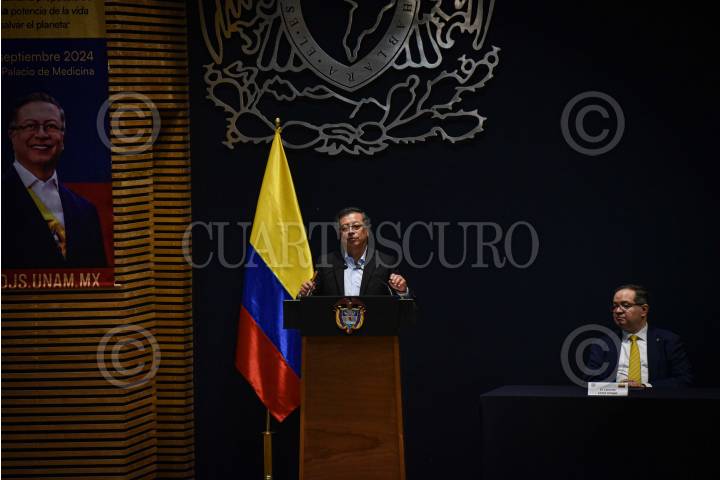 CIUDAD DE MÉXICO, 30SEPTIEMBRE2024.- El presidente de la República de Colombia, Gustavo Petro, dio una conferencia en el Antiguo Palacio de Medicina. En el evento estuvieron también Leonardo Lomeli, y el investigador John Ackerman. FOTO: PEDRO ANZA /CUARTOSCURO.COM