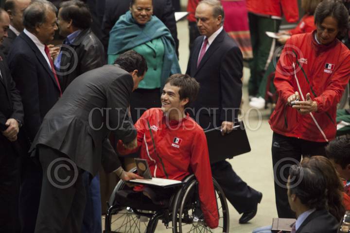 MÉXICO, D.F., 11OCTUBRE2012.- Gustavo Sánchez, quien obtuvó cuatro medallas en los Juegos Paralímpicos de Londres 2012, en una ceremonia realizada en la Cámara de Diputados. FOTO: MOISÉS PABLO /CUARTOSCURO.COM