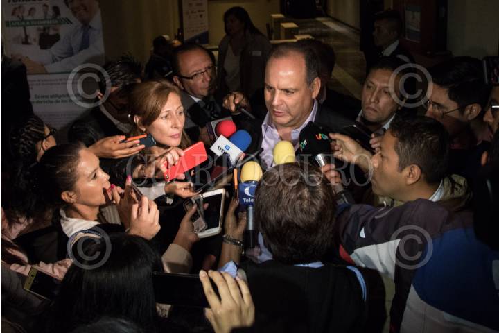 Gustavo de Hoyos Walter durante la conferencia de prensa de Sí por México en el Gran Hotel de la Ciudad de México.
