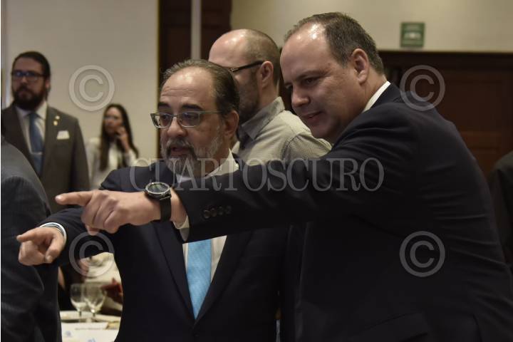 CIUDAD DE MÉXICO, 07FEBRERO2018.- Gustavo de Hoyos Walther, presidente de la Coparmex, y Larry Rubin, presidente de The American Society, ofrecieron una conferencia de prensa en la cual urgieron a la Secretaría de Hacienda a impulsar una nueva Reforma Fiscal, calificaron la actual como la peor reforma estructural promovida por este gobierno, además señalaron que con el esquema fiscal vigente solo gana el gobierno y no impulsa nuevas inversiones. FOTO: MOISÉS PABLO /CUARTOSCURO.COM