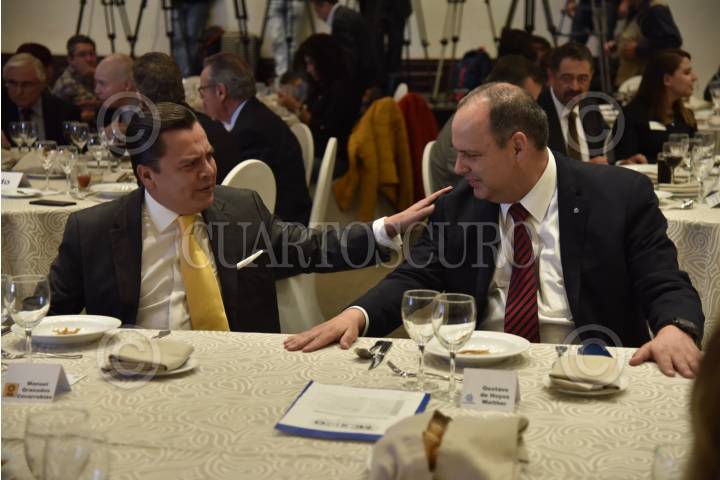 CIUDAD DE MÉXICO, 14JUNIO2018.- Manuel Granados, presidente del PRD, y Gustavo de Hoyos Walther, presidente de la Coparmex, durante una comida organizado por la Confederación Patronal de la República Mexicana, en donde estuvieron representantes de otras fuerzas políticas. FOTO: MARIO JASSO /CUARTOSCURO.COM