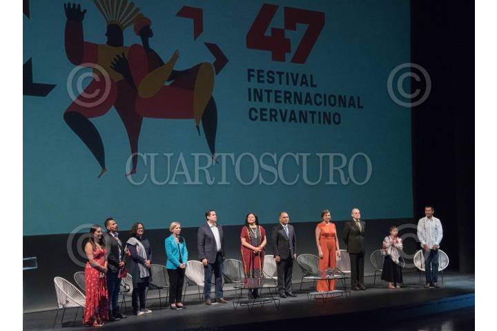 CIUDAD DE MÉXICO, 04JULIO2019.- Diego Sinhue Rodríguez Vallejo, gobernador de Guanajuato; Alejandra Frausto, secretaria de Cultura federal; Héctor Astudillo Flores, gobernador de Guerrero, y Mariana Aymerich, directora del FIC, durante la presentación de la programación de la edición 47 del Festival Internacional Cervantino (FIC) que se realizará del 9 al 27 de octubre, la cual contará con 295 actividades, de ellas 32 serán dedicadas al tema de migración. FOTO: MARIO JASSO /CUARTOSCURO.COM