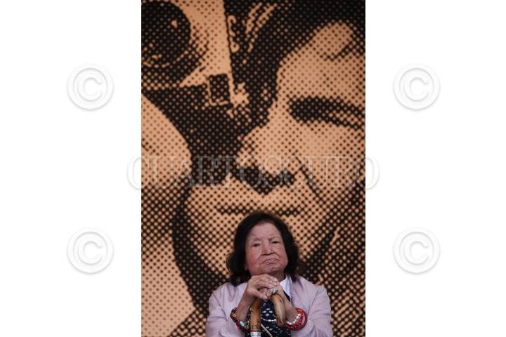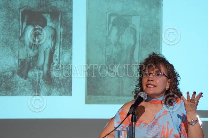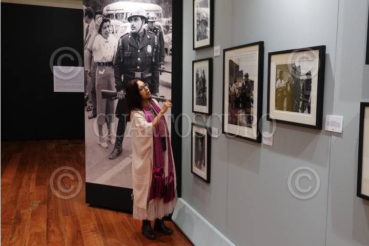María García, viuda del fotógrafo Héctor García la exposición "El lado oscuro del régimen: la protesta del 58 y el 68" en el Centro Cultural Los Pinos