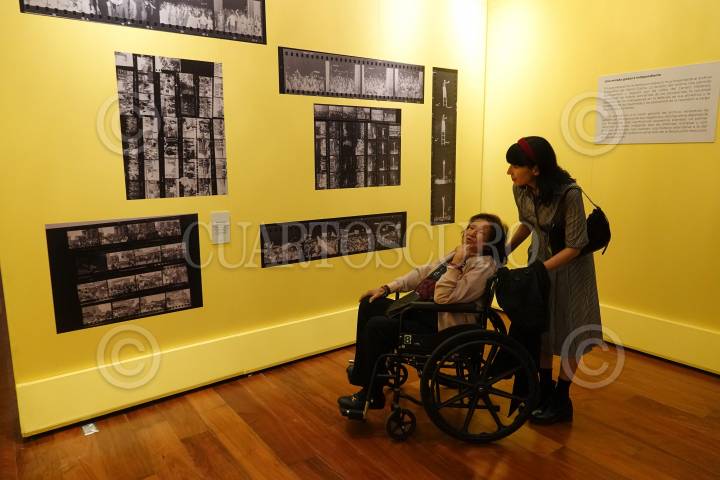 La fotógrafa María García acompañada de su nieta durante la exposición "El lado oscuro del régimen: la protesta del 58 y el 68", con la curaduría de Alberto del Castillo en el Centro Cultural Los Pinos
