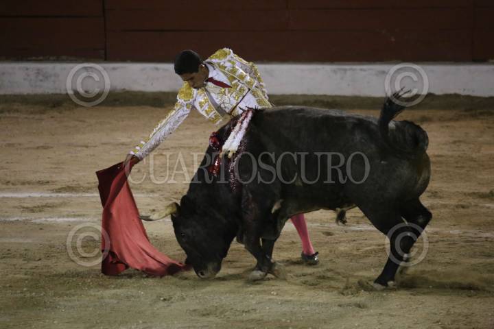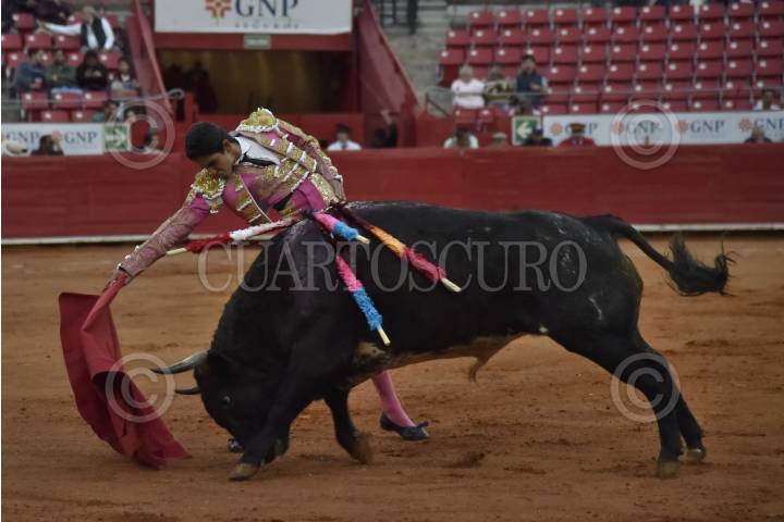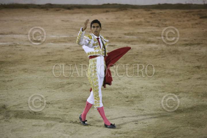 CIUDAD DE MÉXICO, 12NOVIEMBRE2017.- El novillero Héctor Gutiérrez, durante la corrida "Triunfadores" como parte del cierre de temporada para novilladas en la Monumental Plaza de Toros México. FOTO: MARIO JASSO /CUARTOSCURO.COM