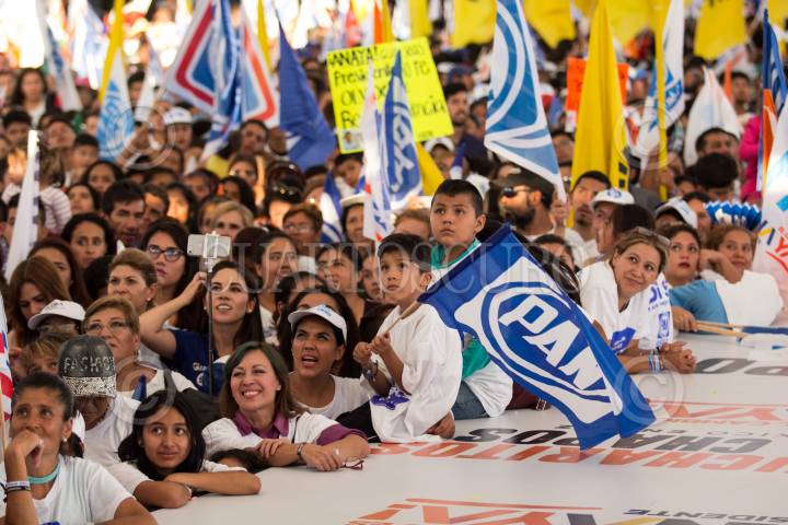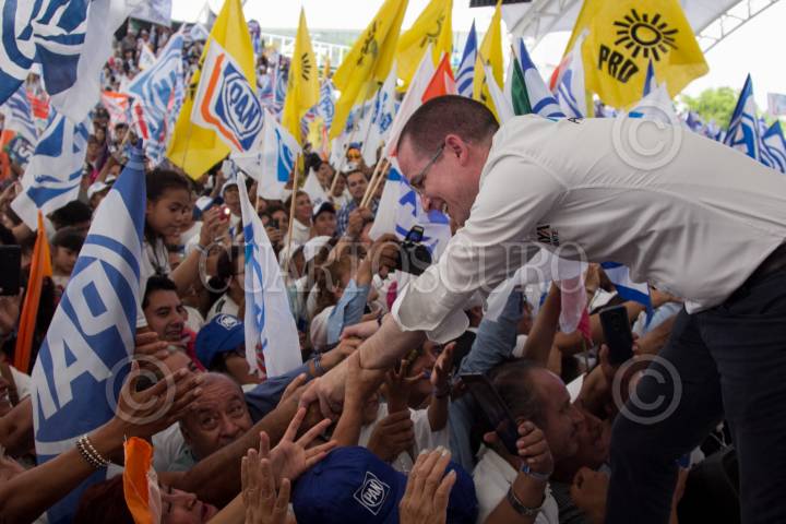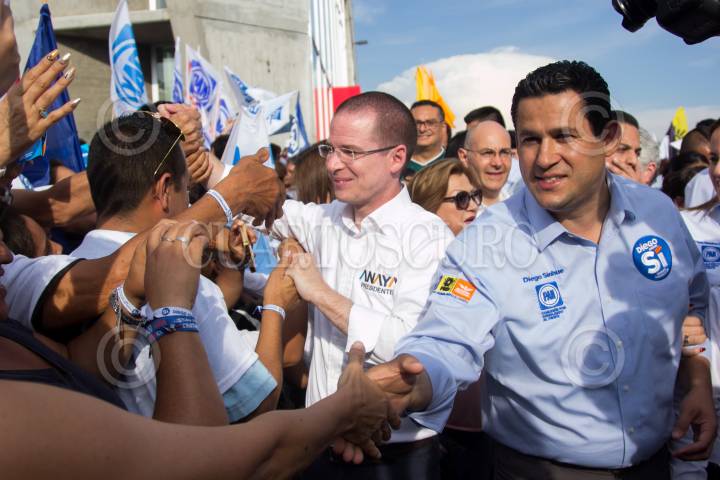 LEÓN, GUANAJUATO, 27JUNIO2018.- Ricardo Anaya Cortés, candidato a la presidencia de la República por la coalición "Por México al Frente" realizó su cierre de campaña en la Mega Velaria del estado. Acompañado del candidato a la gubernatura del estado, Diego Sinhue y del candidato a presidente municipal Héctor López Santillana. FOTO: GALO CAÑAS /CUARTOSCURO.COM