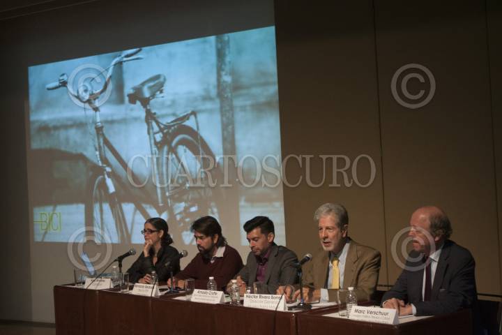 MÉXICO, D.F., 20ENERO2015.- Ana Álvarez, curadora, Bernardo Baranda, director ITDP Latinoamérica, Amado Crotte, especialista senior en transporte Bando Interamericano de Desarrollo, Héctor Rivero, director general del Museo de Franz Mayer y Marc Verschuur, consejo político, prensa y cultura de la embajada del Reino de los Países Bajos, ofrecieron una conferencia de prensa para hablar sobre la exposición "La vuelta en bici", la cual propone una revisión histórica de la bicicleta, sus transformaciones estéticas e innovaciones tecnológicas. La exposición cuya curaduría corrió a cargo de Ana Álvarez y reúne más de 52 bicicletas pertenecientes a 18 coleccionistas y 13 marcas productor, como la Vagabundo, de 1978; una bicicleta inglesa plegable de guerra BSA, de los años 40 y algunos ejemplos contemporáneos. La muestra se abrirá el próximo 28 de enero. FOTO: MOISÉS PABLO /CUARTOSCURO.COM