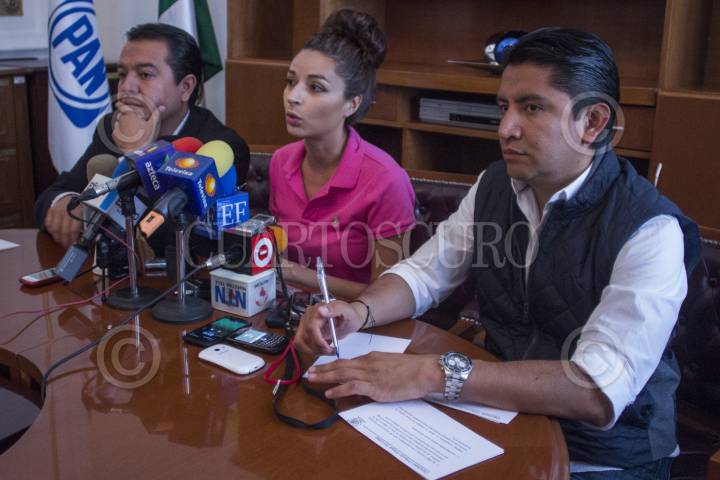 MÉXICO, D.F., 17MARZO2014.- Los diputados panistas en la asamblea legislativa Héctor Saúl Téllez, Laura Ballesteros y Orlando Anaya durante la conferencia de prensa que realizaron para hablar sobre la comisión investigadora de la Línea 12. FOTO: ENRIQUE ORDÓÑEZ /CUARTOSCURO.COM