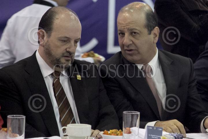 CIUDAD DE MÉXICO, 16MARZO2016.- Héctor Slim Seade, director general de Telmex, y Monte Alejandro Rubido, ex Comisionado Nacional de Seguridad, durante la ceremonia del Centro de Detección oportuna de Cáncer de Mama y del Centro Militar de Ciencias de la Salud. FOTO: MOISÉS PABLO /CUARTOSCURO.COM