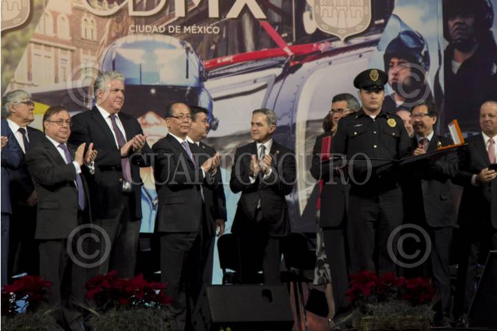 CIUDAD DE MÉXICO, 13DICIEMBRE2016.- Miguel Ángel Mancera, jefe de gobierno de la Ciudad de México, encabezó el evento con motivo del Día del Policía, declarado el 2 de julio de 2011 para reconocer y entregar estímulos a los cuerpos policíacos por su labor. Mancera declaró estar orgulloso de los elementos de la ciudad, a quienes les otorgaron reconocimientos y premios. FOTO: GALO CAÑAS /CUARTOSCURO.COM