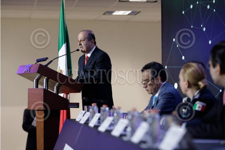 CIUDAD DE MÉXICO, 16JULIO2018.- Héctor Slim Seade, director general de Teléfonos de México (TELMEX); Salvador Cienfuegos Zepeda, secretario de la Defensa Nacional, y Vidal Francisco Soberón Sanz, secretario de la Marina, durante la firma de la alianza entre la SEDENA y TELMEX para el mejoramiento y aprendizaje de las fuerzas armadas, así como de sus familias. FOTO: GALO CAÑAS /CUARTOSCURO.COM