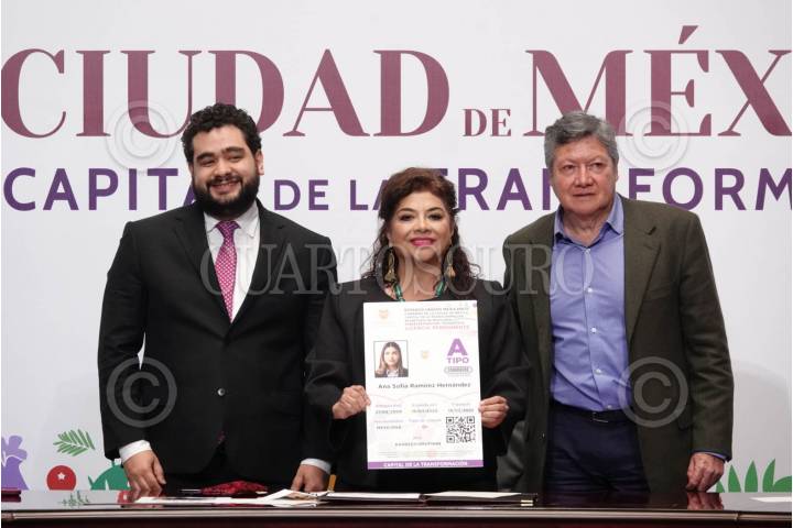 CIUDAD DE MÉXICO, 14OCTUBRE2024.- Héctor Ulises García Nieto, secretario de Movilidad; Clara Brugada, jefa de Gobierno, y Juan Pablo de Botton, secretario de Administración y Finanzas de la Ciudad de México, durante el término de una conferencia en la que se anunció la iniciativa de la Licencia permanente de conducir en el patio de Palacio del Ayuntamiento. FOTO: GRACIELA LÓPEZ/CUARTOSCURO.COM