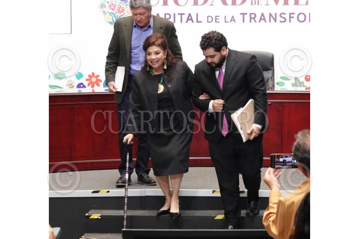 CIUDAD DE MÉXICO, 04NOVIEMBRE2024.- Clara Brugada, jefa de Gobierno, dialoga con el secretario de Movilidad capitalino, Héctor Ulises García Nieto. FOTO: DANIEL AUGUSTO/ CUARTOSCURO.COM
