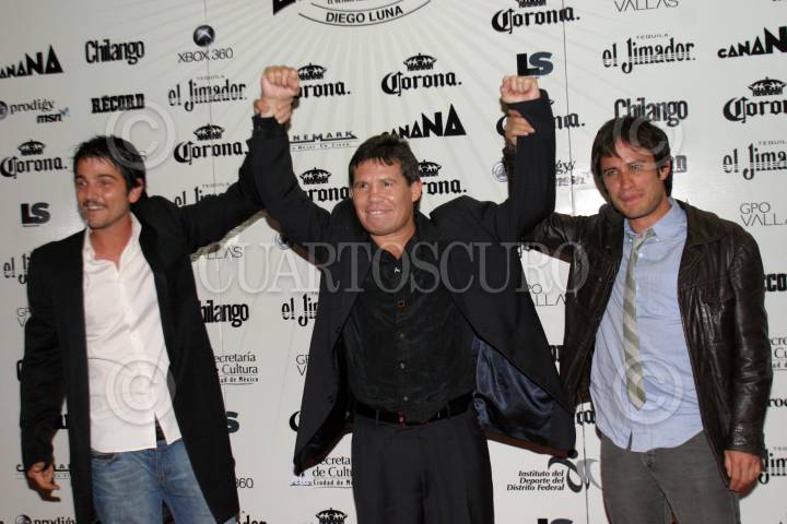 MÉXICO, D.F., 16MAYO2007.- Diego Luna, Julio César Chávez y Gael García Bernal, durante la alfombra roja del documental "Chavez, El Ultimo Héroe Mexicano" realizada por Luna, en un cine del sur de la capital. FOTO: MOISÉS PABLO/CUARTOSCURO.COM