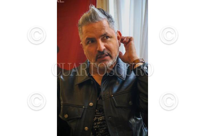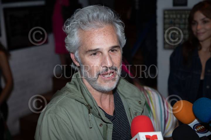 El productor Óscar Uriel durante la develación de placa por el fin de temporada de la puesta en escena "Hamlet" que se presenta en el Teatro Milan.