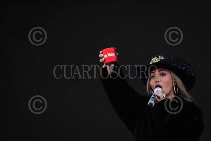 CIUDAD DE MÉXICO, 09SEPTIEMBRE2023.- Chiquis brinda con tequila durante su participación en el festival de música regional "Arre HSBC 2023" celebrado en las instalaciones del Autódromo Hermanos Rodríguez. FOTO: MARIO JASSO/CUARTOSCURO.COM