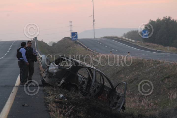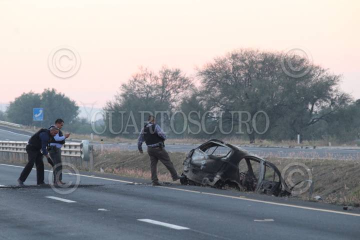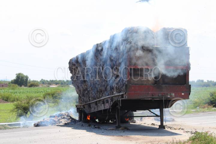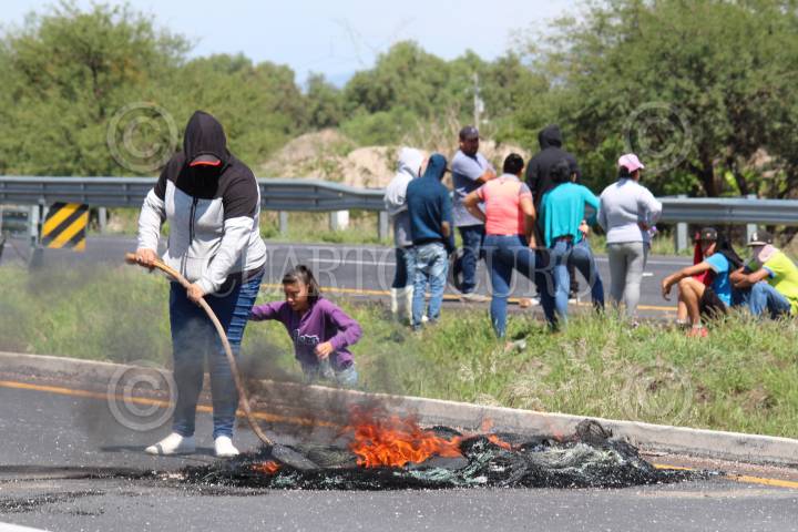 VILLAGRÁN, GUANAJUATO, 11JULIO2019.- Habitantes de Santa Rosa Lima bloquearon y quemaron la caja de un tractocamión en la autopista Querétaro-Salamanca, en el kilómetro 55, se manifestaron por supuestos abusos por operativos de las Fuerzas de Seguridad Pública del Estado (FSPE) en su localidad, esta mañana en uno de ellos un joven fue asesinado y otro más resultó lesionado en una balacera en la carretera alterna de Villagrán. FOTO: ALEJANDRO ROJAS /CUARTOSCURO.COM