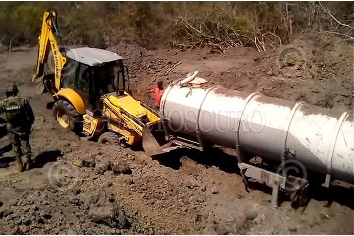 PÁNUCO, VERACRUZ, 14MARZO2019.- La Secretaria de Marina en coolaboración son la FGR, SEDENA y Seguridad Publica Estatal hicieron efectiva una orden de cateo en un domicilio en el municipio de Pánuco Veracruz donde aseguraron dos tanques cisterna enterrados con aproximadamente 48 mil litros de hidrocarburo además de cubitanques, y vehículos tipo pick up los cuales presuntamente están vinculados al robo de hidrocarburo en ductos de Pemex. FOTO: SEMAR /CUARTOSCURO